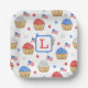 Monogram Red White Blue Cupcake Flag Star Preppy Paper Plate