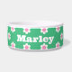 A happy and bright retro daisy pattern in shades of preppy bright green and pink. This design can be personalised with a name or phrase. A great custom gift for a new pet owner.