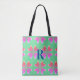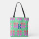 Monogram retro floral green pink tote bag