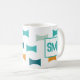 Add a personalised touch to your home with this Customisable Monogram Retro Mid Century Geometric Pattern coffee mug in teal, aqua and orange. Featuring a chic retro design inspired by the 1950s and 1960s, this design allows you to use the "Edit using Design Tool" option to make it uniquely yours. Change the background and box colour, adjust the text's font style, colour, size, and positioning for a truly custom piece. Perfect for stylish home decor and a thoughtful gift!