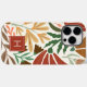 Monogram Retro Terracotta Floral Boho Case-Mate iPhone 14 Pro Max Case . Perfect as a custom gift to a girl, daughter, your friend or officemate.