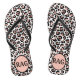 A monogrammed Rose Gold and Black Leopard print animal print flip flops.