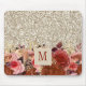 Monogram Rose Gold Flowers Light Gold Glitter Mouse Mat