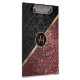 Monogram Rose Gold Glitter and Black Damask Clipboard