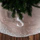 This festive Christmas tree skirt features rose gold brushed metal background with sparkling silver glitter borders. Add your family name and initial for a personal touch.