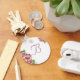 Design front features a white background to the image of soft pink roses bordering the initial you supply displayed in an elegant pink font.