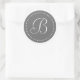 Monogram Round Grey/White Dot Border Classic Round Sticker