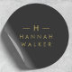 A simple, stylish custom monogram round sticker label featuring elegant gold minimalist typography on a sleek off black background. This refined design can be easily personalised with your initials, name, and optional feature line for a unique, one-of-a-kind look. Perfect as a wedding sticker, everyday gift seal, or elegant envelope seal, this versatile template adds a touch of sophistication to any occasion. Ideal for weddings, small businesses, stationery, or personal correspondence, this minimalist design combines timeless style with modern charm. A beautifully simple way to elevate packaging, favours, or invitations with effortless elegance.