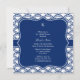 Monogrammed royal blue seigaiha pattern. Royal blue seikaiha japanese pattern. In the middle there is a royal blue shape and the invitation's text is white. Wedding invitations.