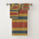 Monogram Rust Mustard Yellow Navy Blue Stripes Bath Towel Set
