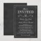 Rustic Chalkboard Wedding Invitations with monogram and rounded edges optional -- Black and White Chalkboard Wedding Invitations. Fancy monogram with swirls motif. Elegant retro typography with formal vintage script calligraphy, swooshes, old-fashion poster-style with a frilly rustic curly border. Perfect for traditional, country, or romantic garden weddings, but with a trendy touch of modern style for sophisticated couples. Just add the bride and groom names and wedding details. Easy to use template can be modified for formal or semi-formal weddings. Click Customise It to change the type style, colours, and size of fonts. Other sizes and colour styles available, along with coordinating postage sets, bridal shower accessories and wedding kit essentials for diy brides on a budget.Please contact us for help with customisation if you need additional room for your wedding details.
