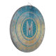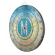 A monogram dart board is a fun way to express your personal style. Design offers a rustic vibe with an array of blue, gold, and grey colours. You can customise with a monogram or letter of your choice. Use the template to create your own monogram dart board.