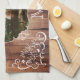 Monogram Rustic Woodland Wedding Photo Wood Panel Tea Towel