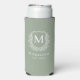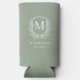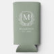 Monogram Sage Green Crest Botanical Wedding Seltzer Can Cooler