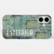 Pastel aesthetic trendy cool monogram initial letters name iPhone case.. Customisable,personalizable if you wish,or the script can be simply deleted.Monochrome monochromatic, neutral, natural aspect, with subtle nuances of sage green,olive green,teal blue, cyan, grey and white.Distressed grunge artistic image look and matching font choice.Muted powdered soft tones nuances for decorative abstract design. Textile collage patchwork interpretation, a cool fashionable accessory and protection for your iPhone or as a beautiful creative original thoughtful gift idea.
