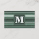 Monogram sage green stripes business card