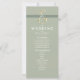 Simple, contemporary, minimal sage green wedding program with modern calligraphy and elegant gold ampersand.