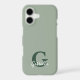 Personalized customized iPhone case with monogram Initial letter and name in white trendy calligraphy script. Sophisticated natural two tones of green combination, sage green and forest green. Modern monochromatic feminine chic stylish fashionable tech accessory for your cellphone protection . Or a thoughtful and useful custom gift for her, under 35 dollars, suitable for many occasions and celebrations, like birthday, Mother’s Day, graduation, retirement, Christmas, anniversaries etc. Lightweight, ultra slim, glossy finish and durable case to protect your cellphone mobile phone in style.