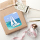 Monogram Sailboat Coastal Tropical Beach Stickers. A sailboat with your name on it approaching a beach. Tropical sea view. Blue, teal, sea foam, turquoise, green, white.
