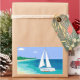 Monogram Sailboat Coastal Tropical Beach Stickers. A sailboat with your name on it approaching a beach. Tropical sea view. Blue, teal, sea foam, turquoise, green, white.
