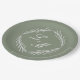 Monogram Script Branch Sage Green Wedding Paper Plate