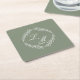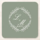 Monogram Script Branch Sage Green Wedding Square Paper Coaster