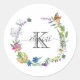 Monogram Script Calligraphy Butterflies Flowers Classic Round Sticker