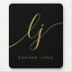Monogram Script Elegant Feminine Black Gold Custom Mouse Mat