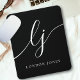 Monogram Script Elegant Feminine Black White Monogrammed Custom Mouse Pad