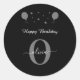 Monogram Script Happy Birthday Black White Grey Classic Round Sticker