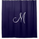 Monogram this minimalist navy blue and white shower curtain with one initial. Elegant and classic.