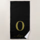 Monogram Script Name Personalised Black And Gold Beach Towel