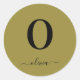Monogram Script Name Personalised Gold And Black Classic Round Sticker
