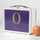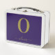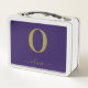 Monogram Script Name Personalised Purple And Gold Metal Lunch Box