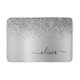 Silver Faux Foil Metallic Sparkle Glitter Brushed Metal Monogram Name Bath Mats. This makes the perfect graduation, birthday, wedding, bridal shower, anniversary, baby shower or bachelorette party gift for someone that loves glam luxury and chic styles.