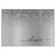 Silver Faux Foil Metallic Sparkle Glitter Brushed Metal Monogram Name Cutting Board. This makes the perfect graduation, birthday, wedding, bridal shower, anniversary, baby shower or bachelorette party gift for someone that loves glam luxury and chic styles.