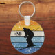 Monogram Silhouette Snow Skier Retro Stripe Key Ring