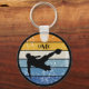 Monogram Silhouette Soccer Player Retro Stripe Key Ring