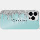 Monogram Silver Aqua Blue Glitter Drip Android + Case-Mate iPhone Case