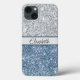 A fun trendy stylish silver and blue glitter monogrammed iPhone case. Available in all current iPhone sizes.