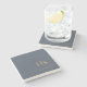Monogram Simple Elegant Classic Navy Blue Gold Stone Coaster
