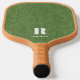 This stylish pickleball paddle features a classic olive green denim print background with white typography name and initial on both sides. A solid black denim print covers the back. Choose white, tan (shown) or black. Easily change name and initial to make it yours using the Template provided. See "About This Product" at side for information and specifications. You can choose to have the USA Pickleball certification printed on the paddle.
