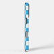 Cool iPhone case features a bold sky blue and white chequered pattern with a customisable monogram. Add (or delete) 3 initials or numbers in the sidebar to personalise it. The geometric chequerboard pattern is made of rows of alternating white and bright blue squares. Other case styles and models also available in the sidebar.