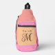 Create a personal crossbody bag of peach, pink and yellow colour blocks and your customised First name and last initial in a script.