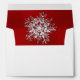 This holiday envelope features a snowflake with silver ribbon trim on a red background. The back flap has a placeholder for the last name initial bordered by leaf monogram frame in silver. This envelope is designed to coordinate with the "Silver Framed Photo & Crystal Snowflake Holiday Card" To change details, click «Personalise». To move the text or change the text size, font, or colour click «Click to customise further».