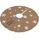 This tree skirt is accented with your family monogram on an illustrated burlap background covered in snowflakes.