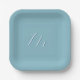 Monogram Solid Blue Pastel Minimalist Professional Paper Plate