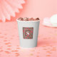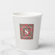 Royal Stewart Tartan plaid square print and double-framed white initial decorate this set of platinum background paper cups. Easily change the initial using the Template provided. Dimensions are 3.75"h x 3"d, The cup is 8oz capacity and ideal for cold and warm beverages. Add a lid for a small charge (I think it is worth getting lids). I take mine to convention, very nice quality. See "About This Product" at side for more information. Printed in USA.