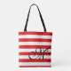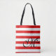 Personalise with your initial. Monogram & Stripes Tote Bag. Available in red, blue and other colours including purple, lavender grey, pink, yellow. sea green, and sea blue. Please see our "tote bag" collection to see the other colours.