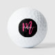 Monogram Stylish Modern Black Hot Pink Golf Balls